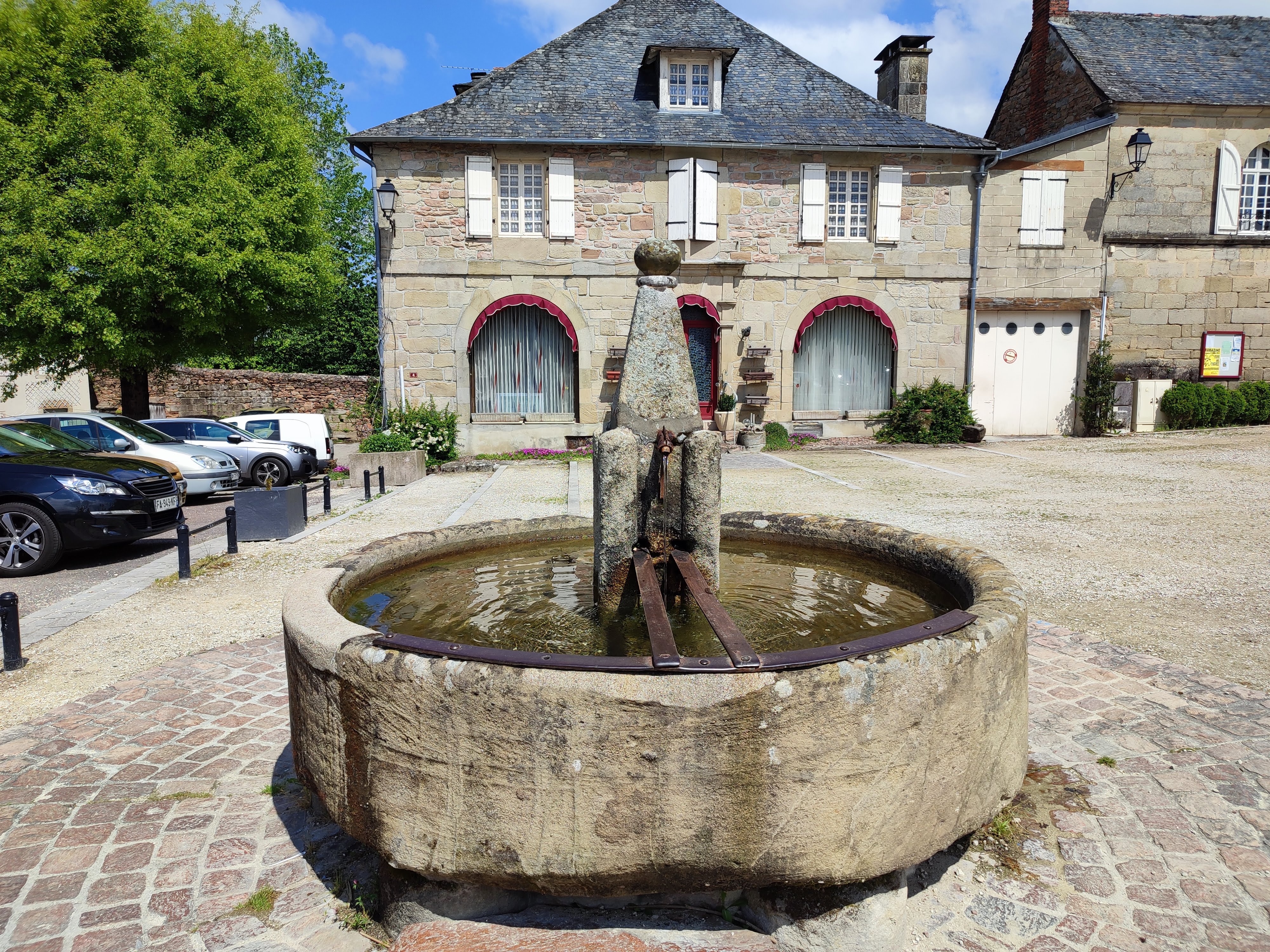 Superbe bâtiment vu de l'extérieur, au pied de celui ci la fête aux chèvres annuelle, expo d'artisans en tout genre et le vin rouge coule à la fontaine toute la journée, .