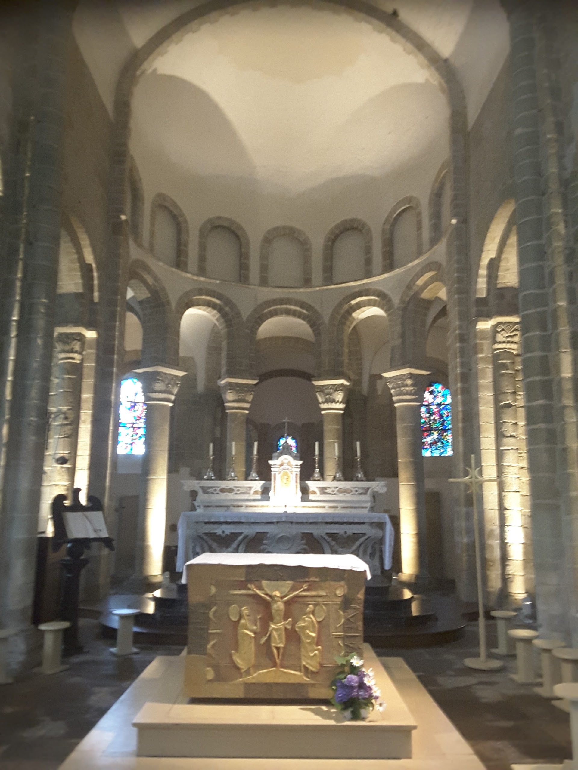 Si vous passez à Saint Gildas, ne manquez surtout pas de visiter son Abbatiale.Ses vitraux sont splendides et lumineux. Un autel mis en valeur par la lumière et le bas relief doré représentant le Christ. Quant à l'orgue majestueux, je n'ai malheureusement pas eu la chance de l’entendre mais je reviendrai.