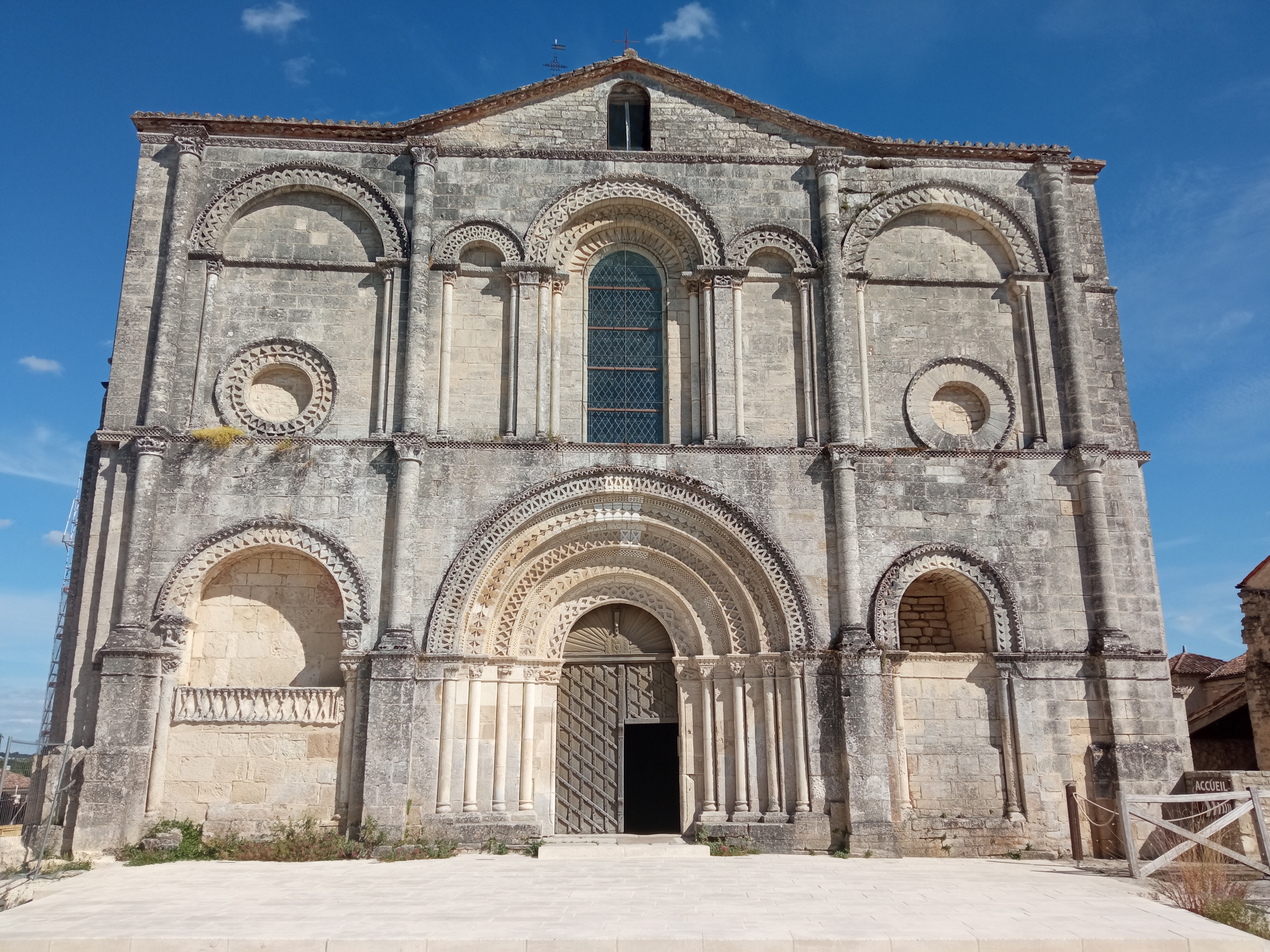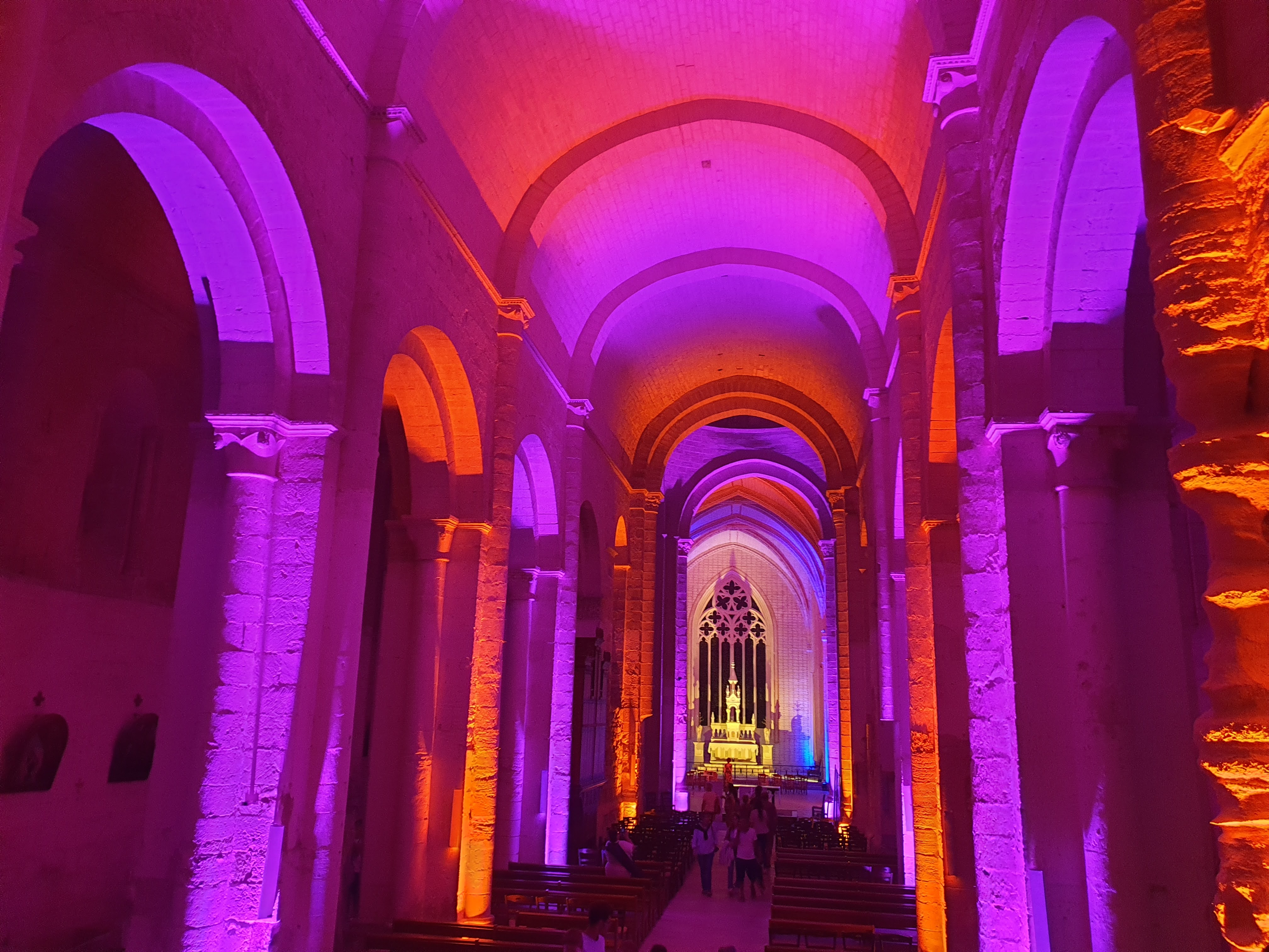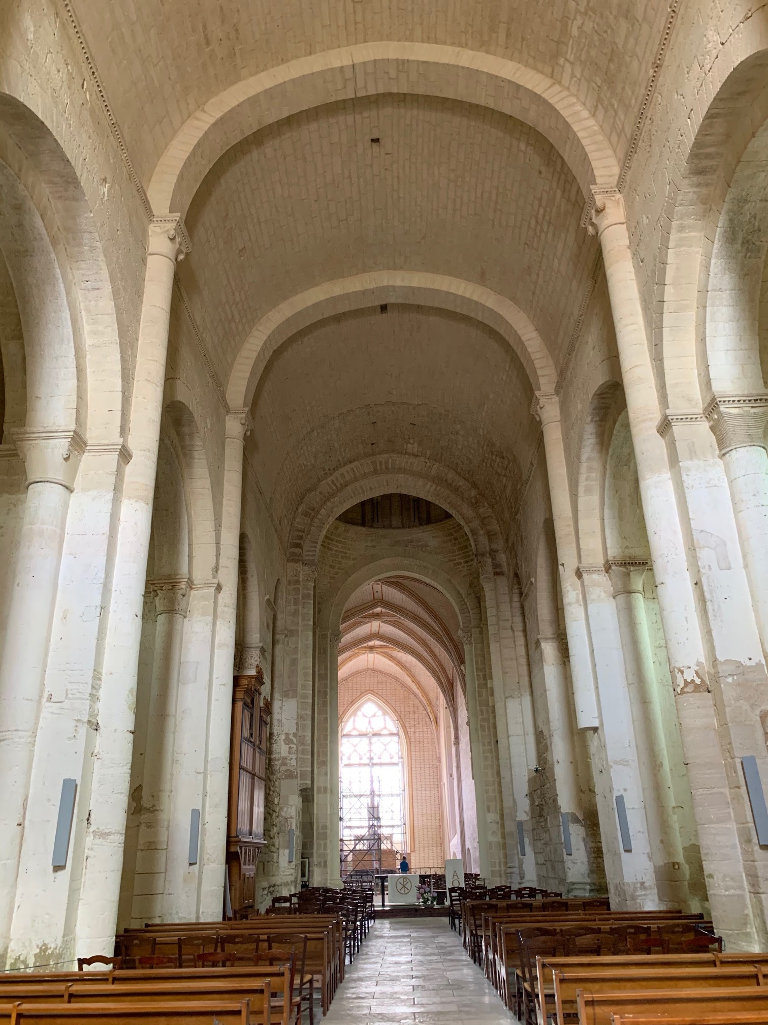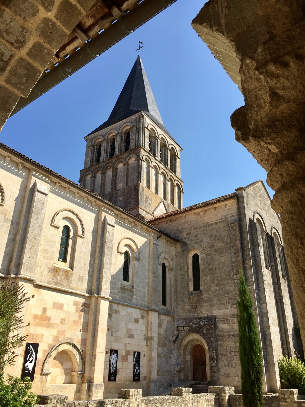 Retour vers ce lieu qui regroupe, une abbatiale, une abbaye, et un Espace d’architecture romane. J'étais venu en 2017, pressé par le temps, j'y suis revenu sans cette contrainte. La restauration du chœur de l'abbatiale, commencée en 2018, aurait du être achevée mais faute d'épidémie et de confinement, le travail a cessé. La restauration est très avancée, seul le vitrail axial reste à installer. Par chance, une visite guidée du chœur, en petit groupe, avec un guide passionnant, nous a permis de découvrir en détail l'histoire et l'évolution des lieux, durant une heure et demie. (En 2017, j'avais écrit : Superbe visite audio guidée ; en plus la signalétique est pertinente et facile d'accès, les outils pédagogiques sont ludiques. Les bâtiments sont bien restaurés, l'accueil est sympathique et l'entrée bon marché.)