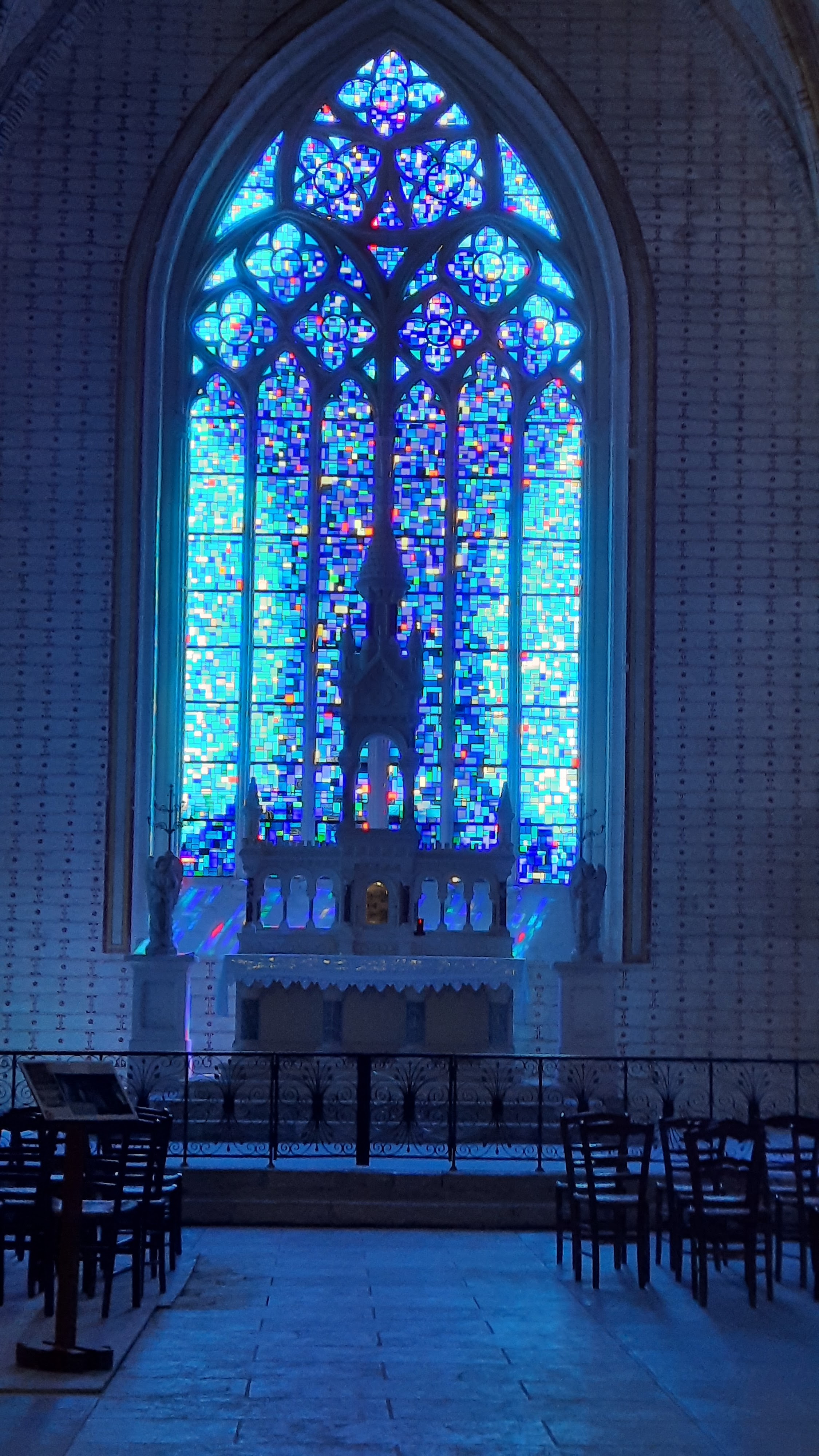 Tres belle restauration le vitrail bleu de la chapelle est magnifique