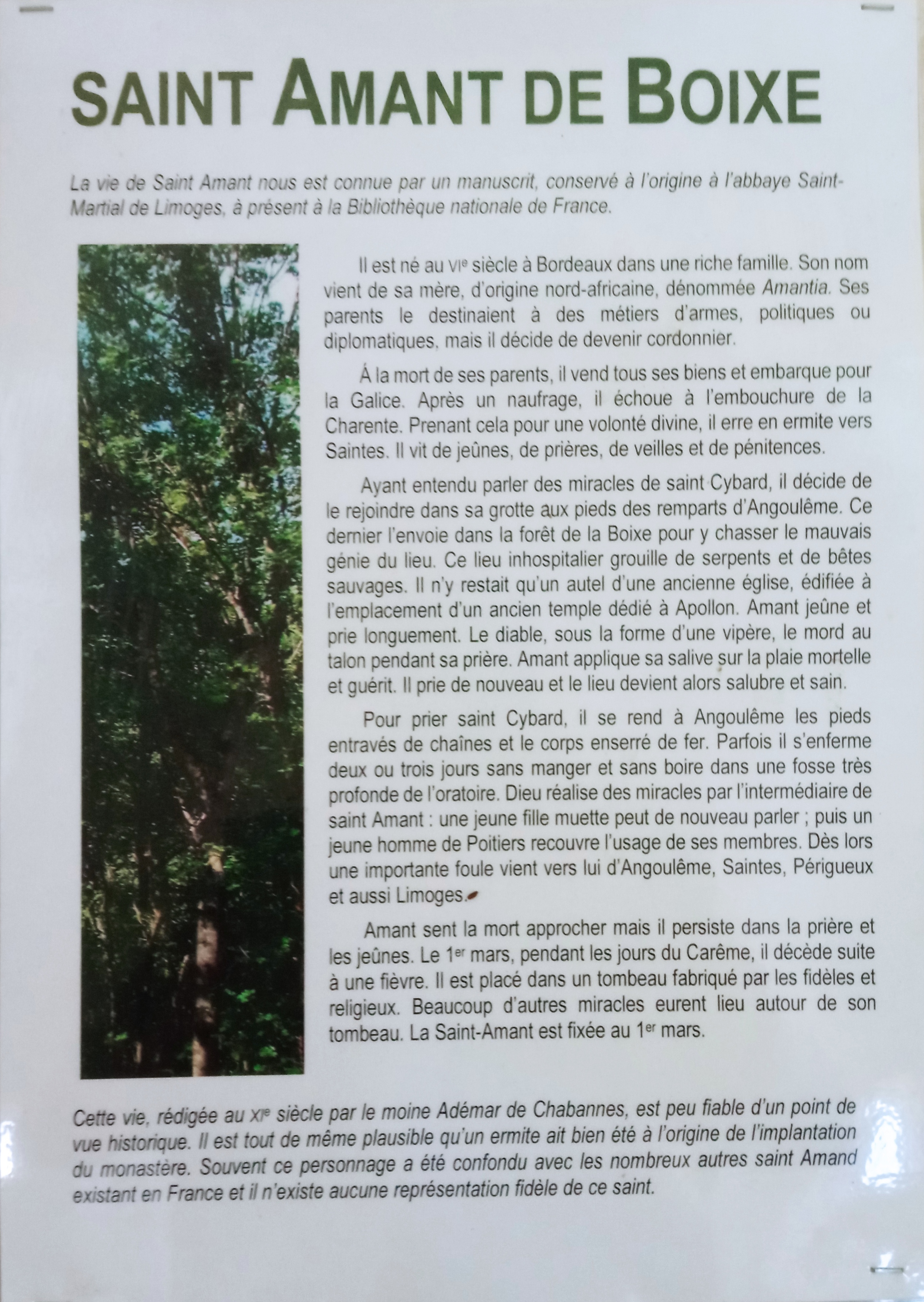 Très belle abbaye, découverte de l'histoire de St Amand de Boixe qui a permis l'érection de ce lieu. Cependant en demandant à l'accueil de musée on m'a dit qu'on ignorait où se trouve le tombeau de St Amand de Boixe, comment cela est il possible ? Aucune fouille n'a été faite ? D'ailleurs est ce que l'abbatiale a été construite à cet endroit à l'origine ? Merci de vos réponses