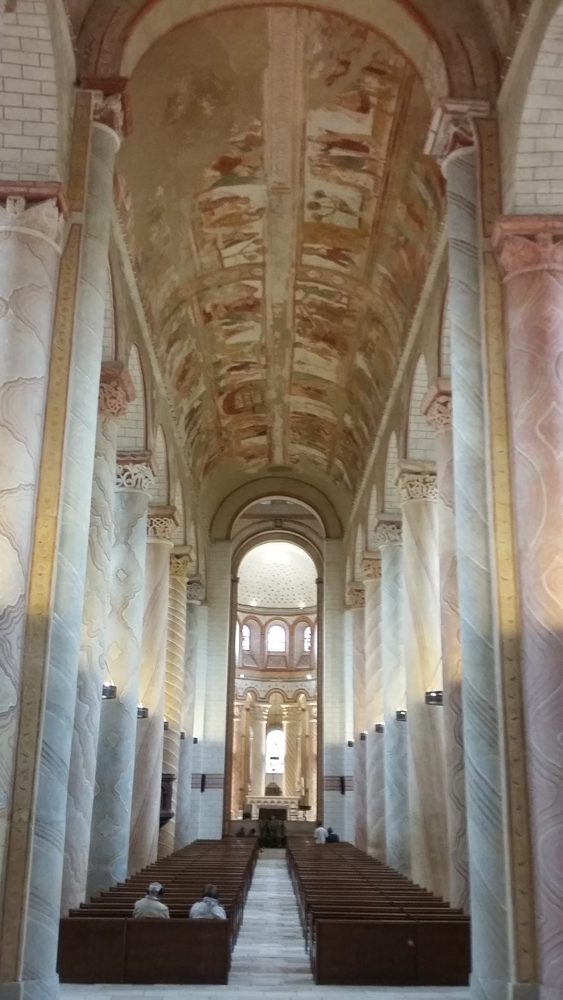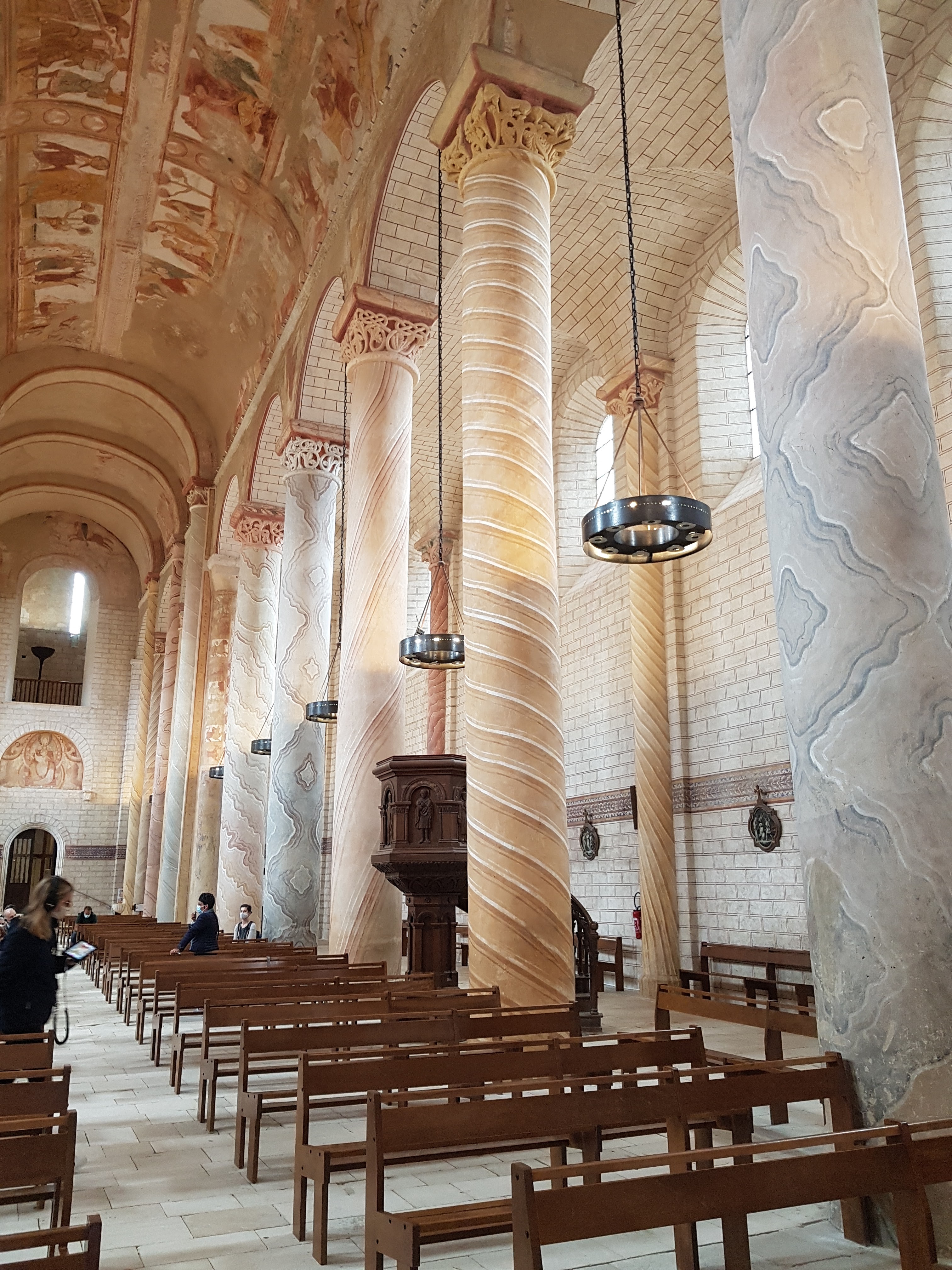 Cet ensemble de fresque serait le plus important en surface de toutes les abbayes ou églises de France. Sur place c'est moins impressionnant que ce à quoi je m'attendais : les fresques sont concentrées au niveau du plafond qui est très haut et on les voit mal. Je crois qu'il faut absolument prendre une visite guidée - si vous arrivez au bon horaire - car le guide vous donnera accès à une mezzanine en hauteur qui vous permettra de mieux voir une parie des fresques. Allez voir la petite chapelle voisine à Antigny qui a aussi des fresques et est restée très authentique.