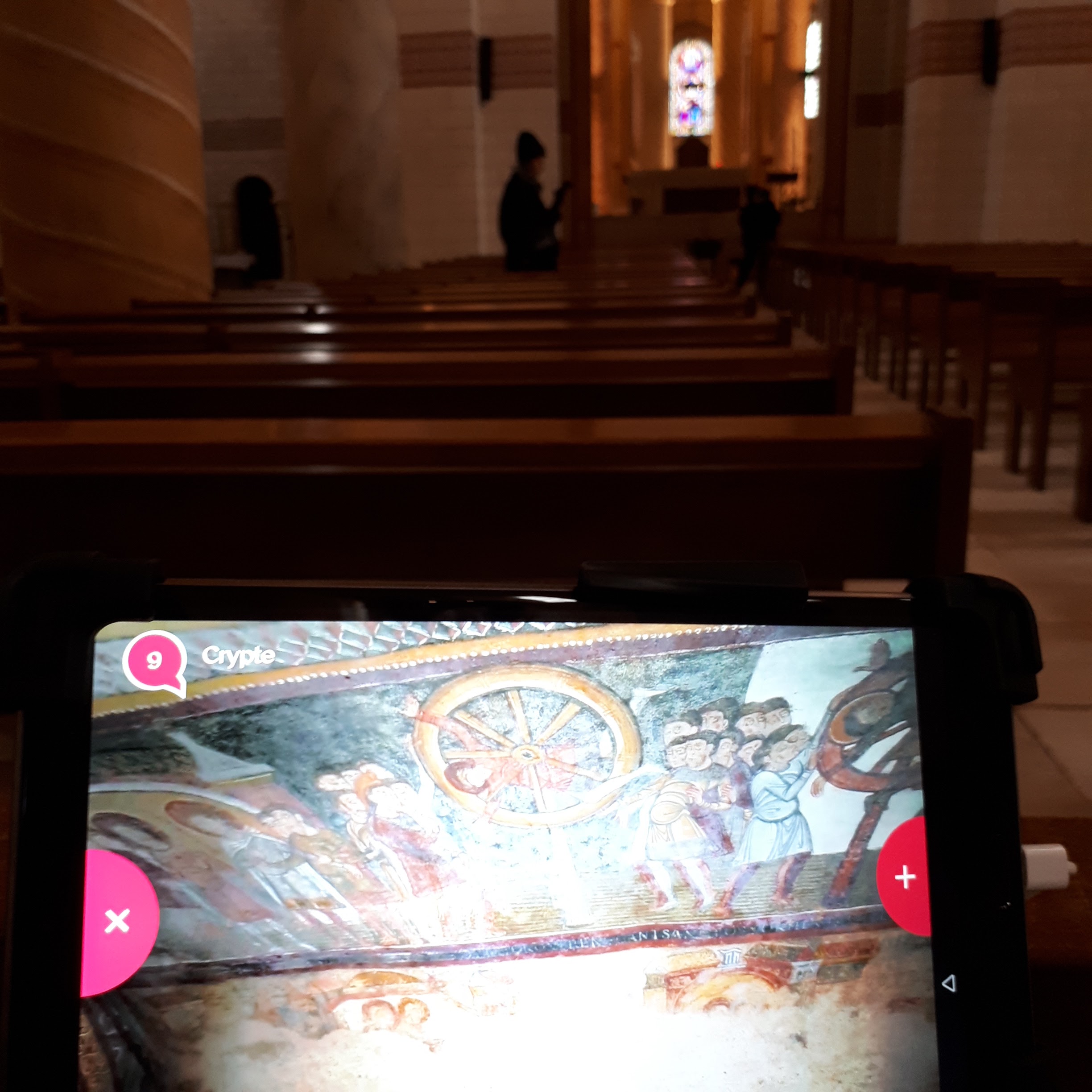 Bonne expérience, je recommande. Adapté également aux enfants et ludique. Le lieu est très atypique, fresques superbes abîmées par le temps et les restorations d'époque (expliquées dans les programmes vidéo) révèlent ses interprétations. J'ai passé un bon moment et les enfants également. 1h 1h30 est suffisant pour s'imprégner du lieu, a coupler donc avec d'autres visites dans le coin. Des tablettes sont fournies pour suivre la visite et les explications. Un programme vidéo pour les adultes et un programme vidéo pour les enfants très adapté et ludique, bien équipé considérant le prix (compter 10 euros pour les adultes, et moins de 5 euros pour les 10 ans). Qq restaurants a proximité sur la place. Le restaurant Cerasus accolé a l'abbaye me tentait vraiment semi-gastro mais victime de son succès je ne peux me prononcer (on m'a également conseillé le Pâtisson place de la République mais fermé le jour de ma visite).