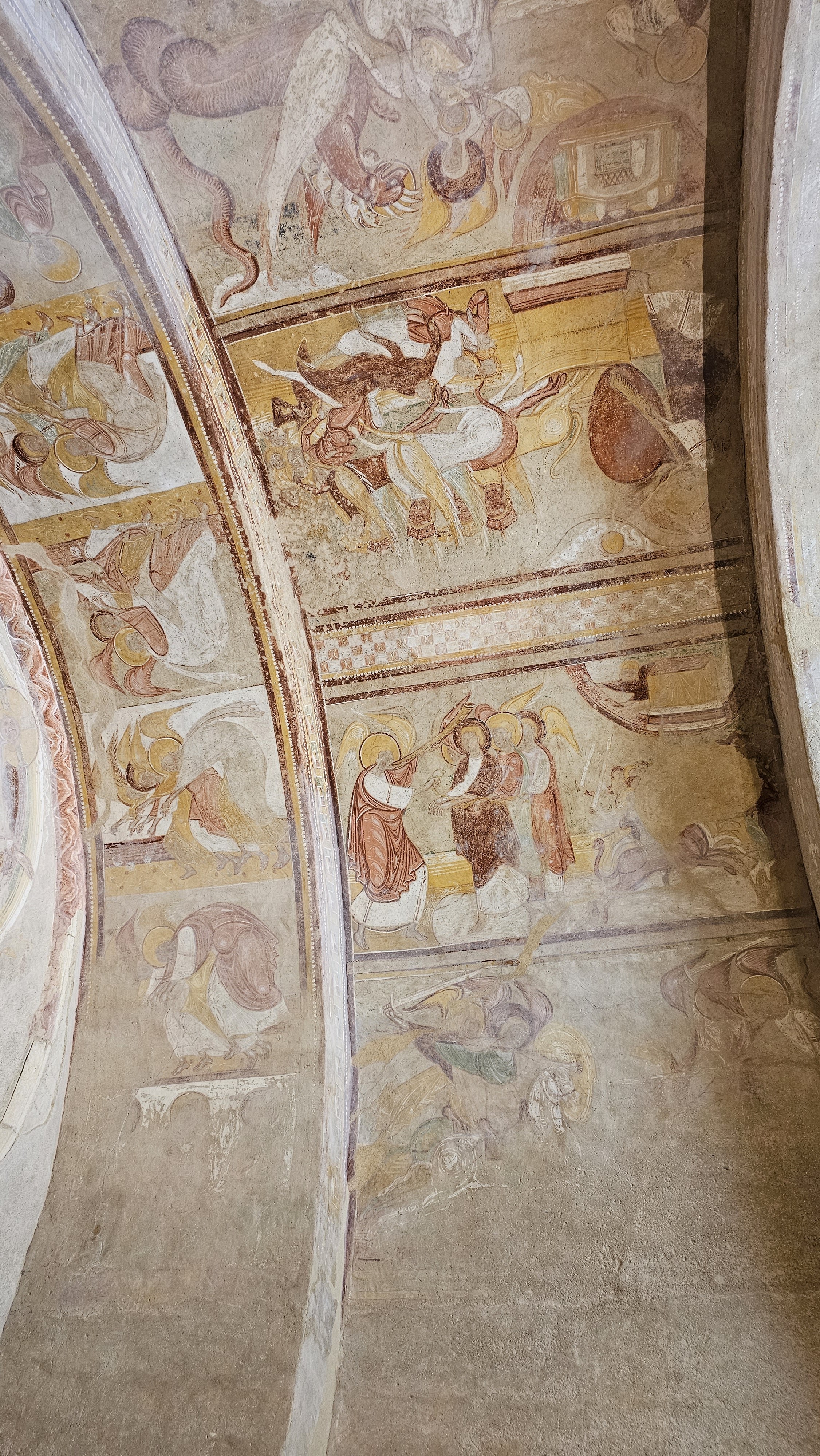 La technique de fresques est intéressante, l'oeuvre est gigantesque et empreinte de grande simplicité démontrant l'humilité des artistes. C'est un véritable outil pédagogique, un peu haut, mais qui donne un côté mystère à l'oeuvre et a ce qu'elle transmet. Pour les fans de peintures murales, de fresques, d'archéologie, d'histoire médiévale, de spiritualité, de théologie.