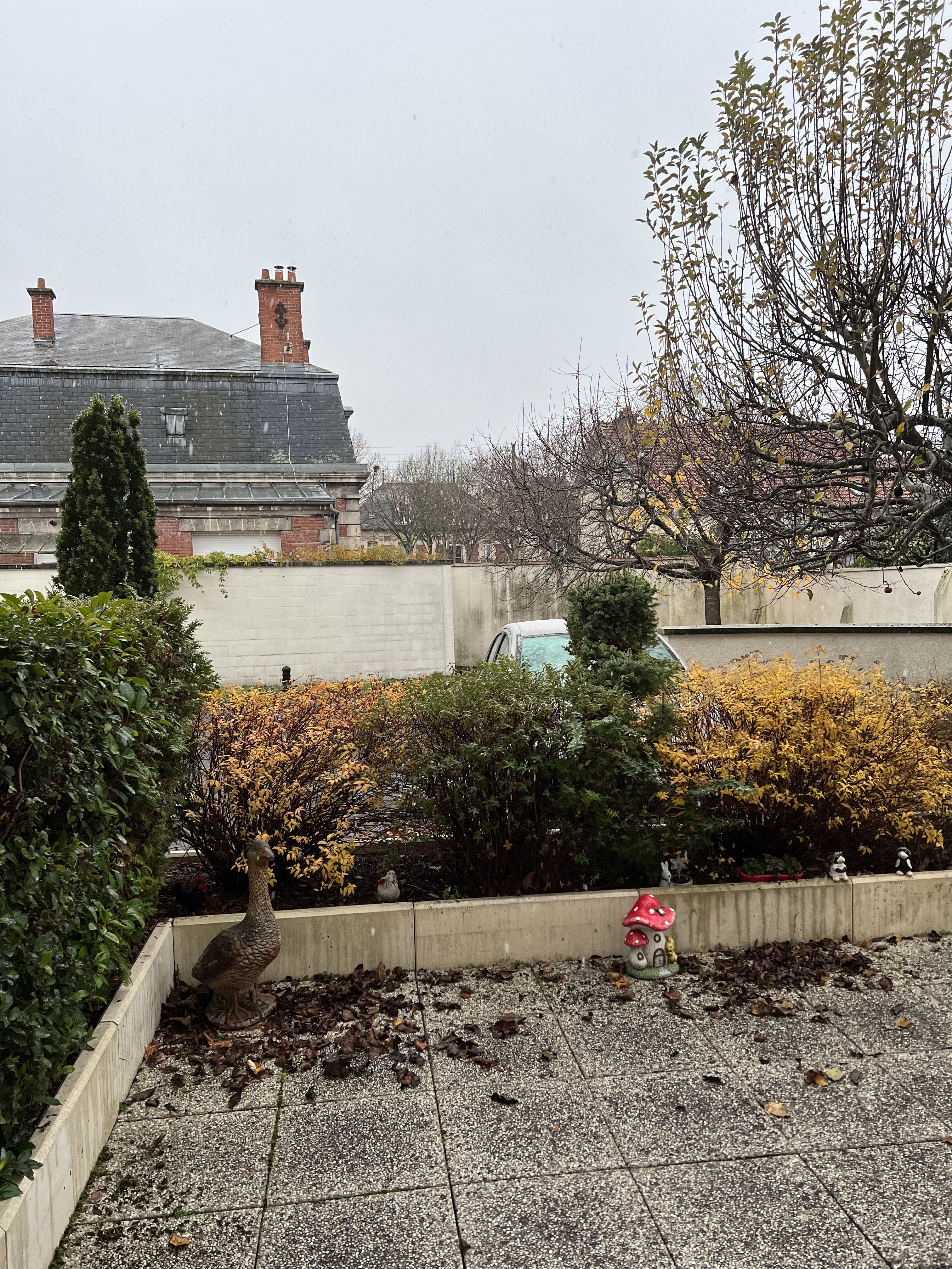 Espace qui pourrait être mieux mis en valeur en désherbant et en soignant les plantation.